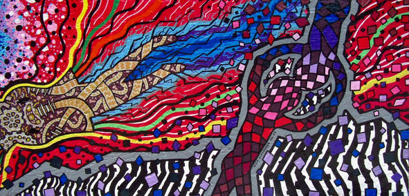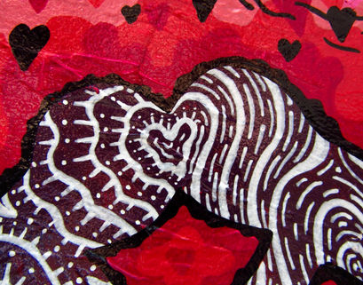 I was commissioned by Queerlective to paint a scrap board for Manchester Pride! This started at an art take down event at To Share Brewing and ended in the garage with some Posca Paint Pens. I tried to show a different style on the in and outside of each couple's silhouette to show that we are all different and emanate different types of auras of different types of love. This was a fun and difficult challenge. I need to take note of the posca pens that glowed to my surprise! I did not intend for anything but the neon pineapple to glow!
